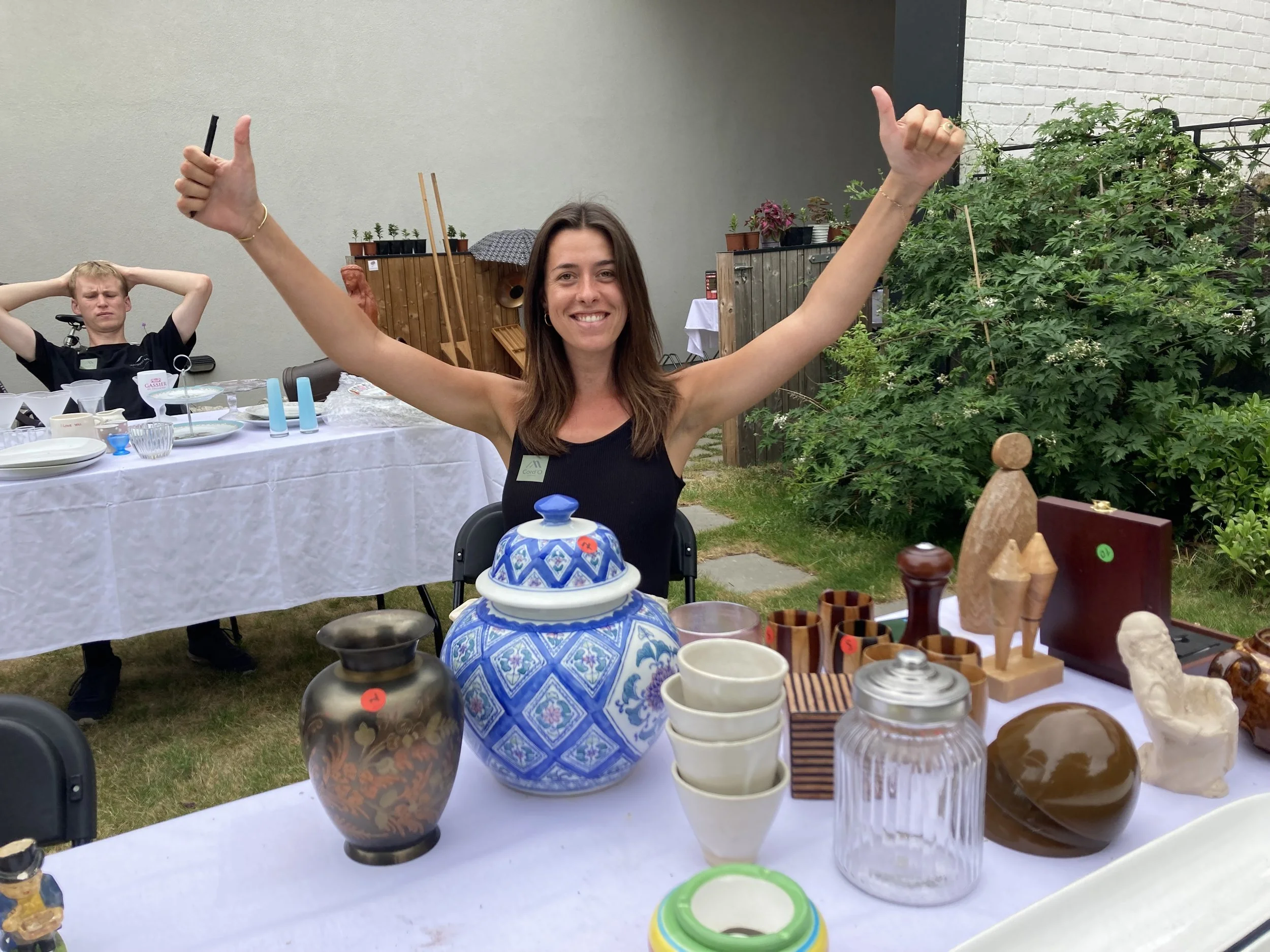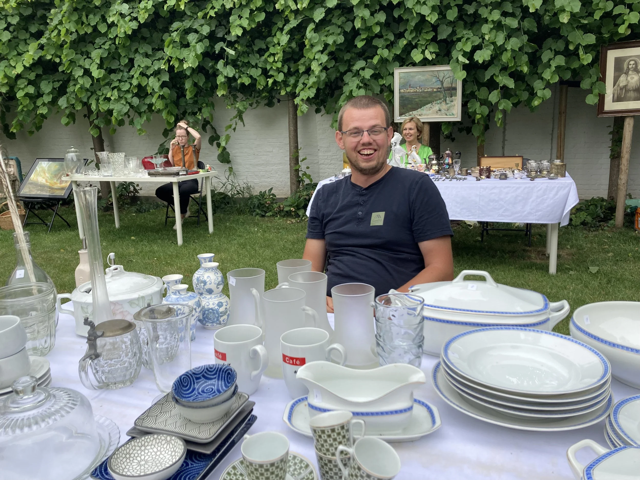 In samenwerking met Kiwanis organiseerden we onze eerste brocanterie! We verzamelden allerlei snuisterijtjes van vrienden, buren en sympathisanten. Het werd een bonte verzameling die we uitstalden in onze achtertuin.