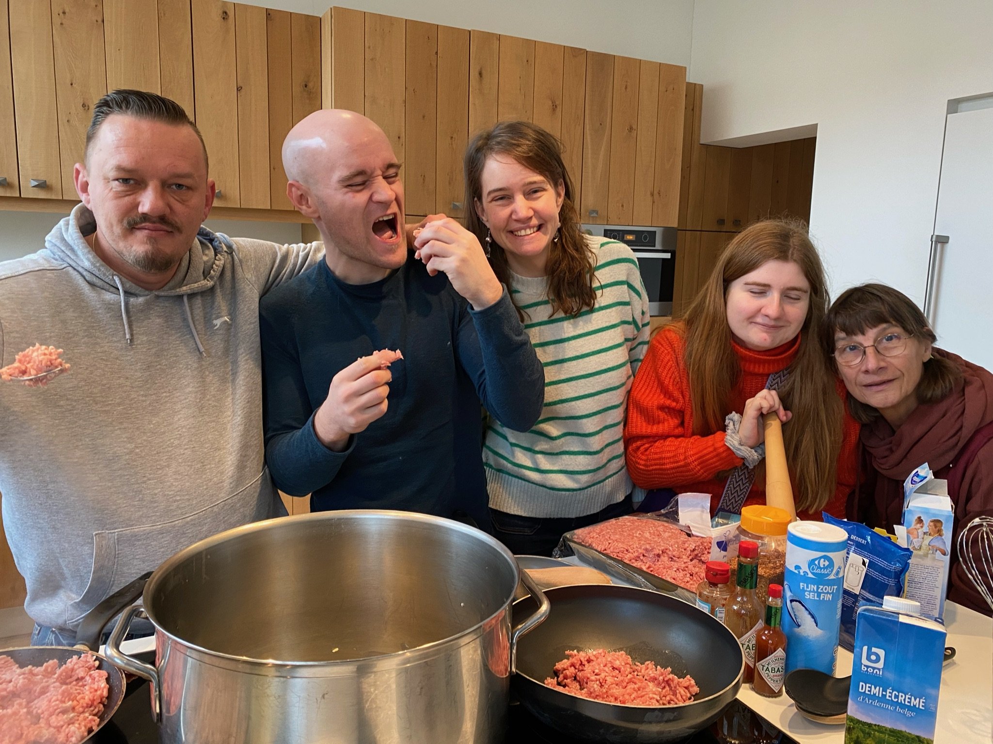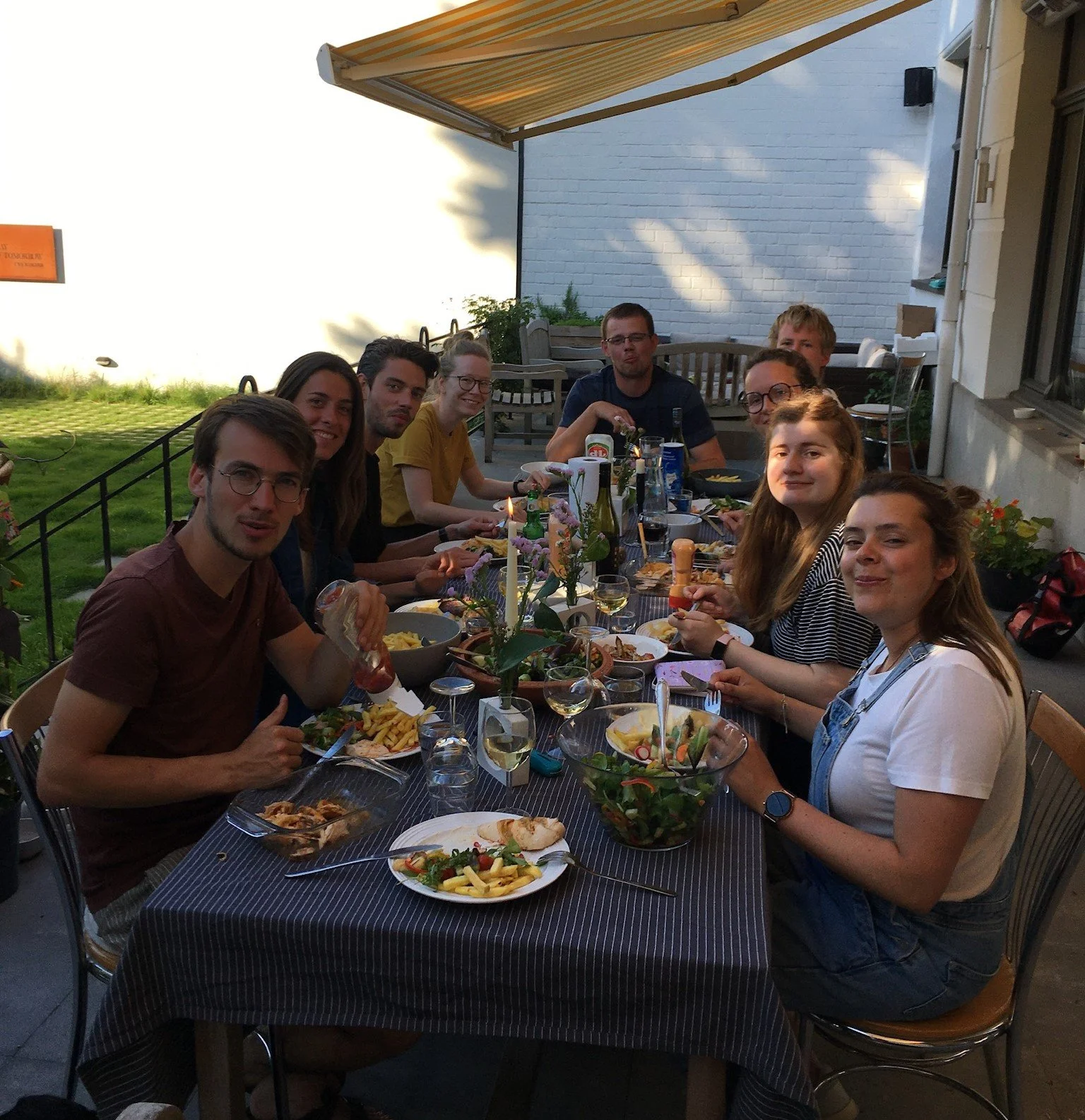 Let’s spice things up! Normaal gezien koken wij dinsdag samen in de gemeenschappelijke keuken. Altijd een groot succes, maar voor deze avond wouden we het toch eens op een andere manier aanpakken. Toen kwamen we op het idee van een tapasavond te organiseren. Iedereen bereidt één gerecht voor en samen gaan we elk appartement af en proeven we van de heerlijke creaties. Het was een groot succes!